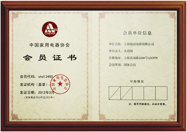 近日,上海德凌電器有限公司成為中國(guó)家用電器協(xié)會(huì)會(huì)員。