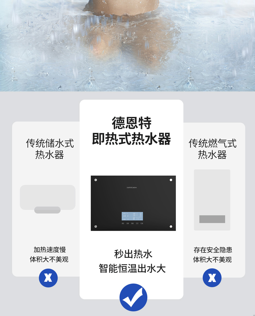 產品中心 > 即熱電熱水器系列> 德恩特DTR-E308B 家用恒溫淋浴熱水器