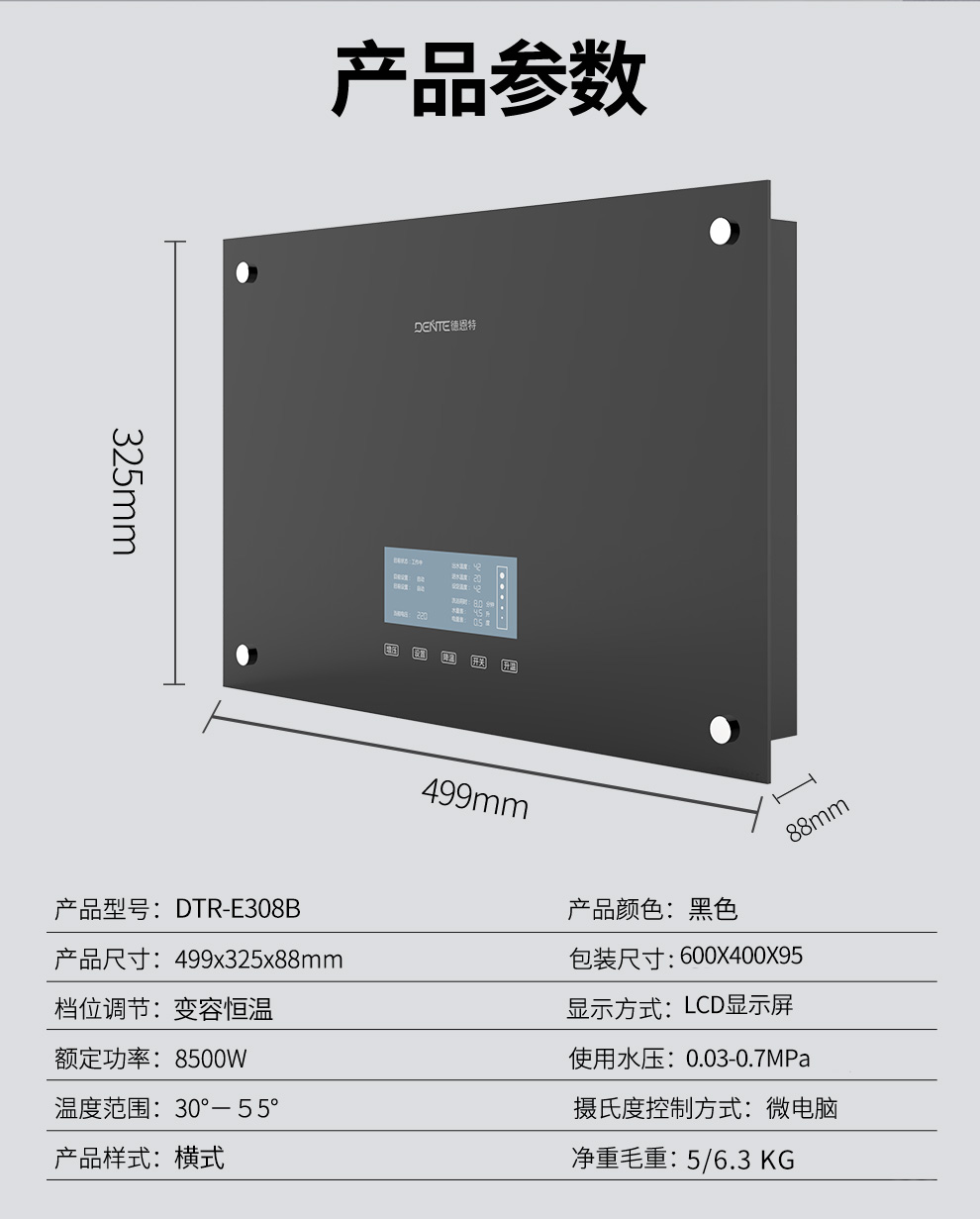 德恩特DTR-E308B 家用恒溫淋浴熱水器